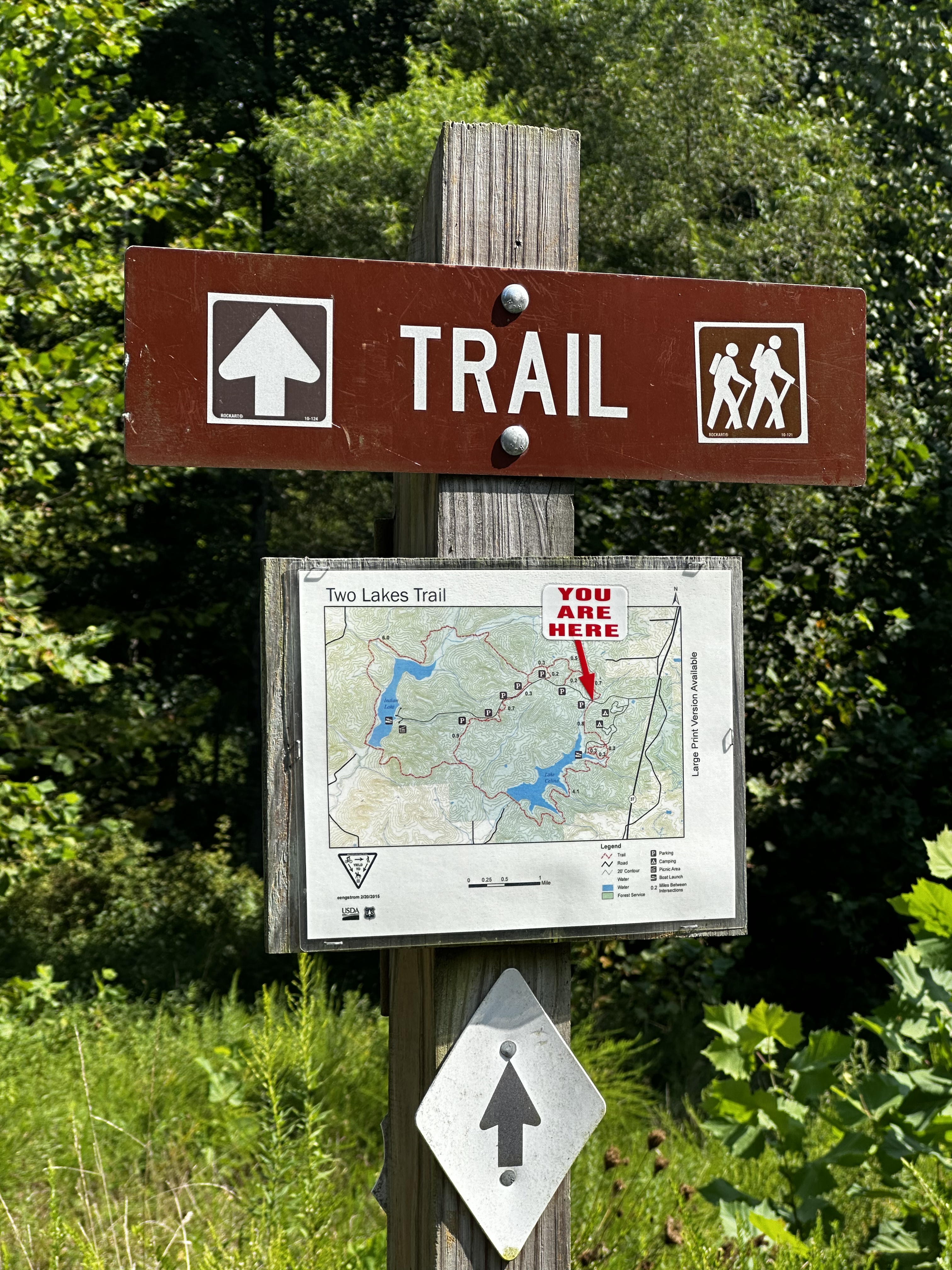 I was beginning to feel the tedium of endless spider web battles and walking through overgrowth when I finally spotted the lake through the trees. To the left, a sign warned there was a path infested with ticks, which was scary, but also made me think, great! In that case maybe the path I came from WASN’T infested.