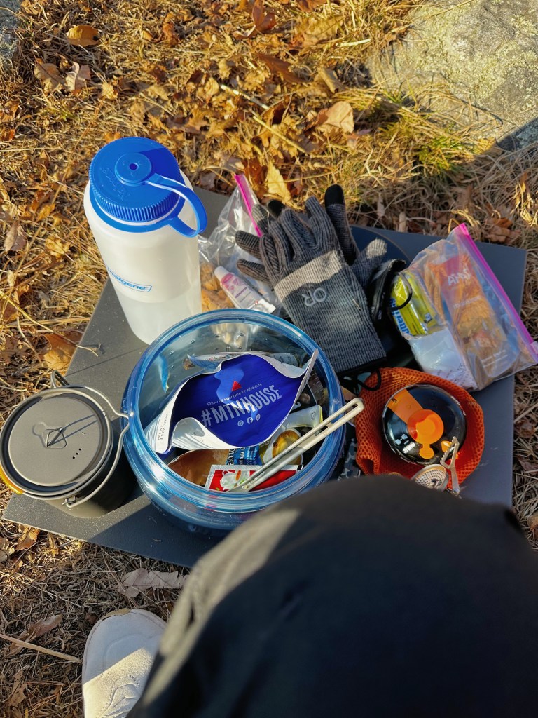 Another lesson learned: cold fingers and bear cans do not mix. It took me way too much time to get this thing open, and I now know why someone invented a bear can key. I’m definitely going to get one!