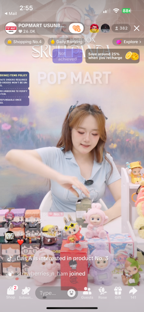 To fully understand this phenomenon (I’m just fascinated by this stuff, what can I say), I spent several hours watching and observing Pop Mart’s live streams on TikTok, and even made a couple of purchases to see what the experience was like.
